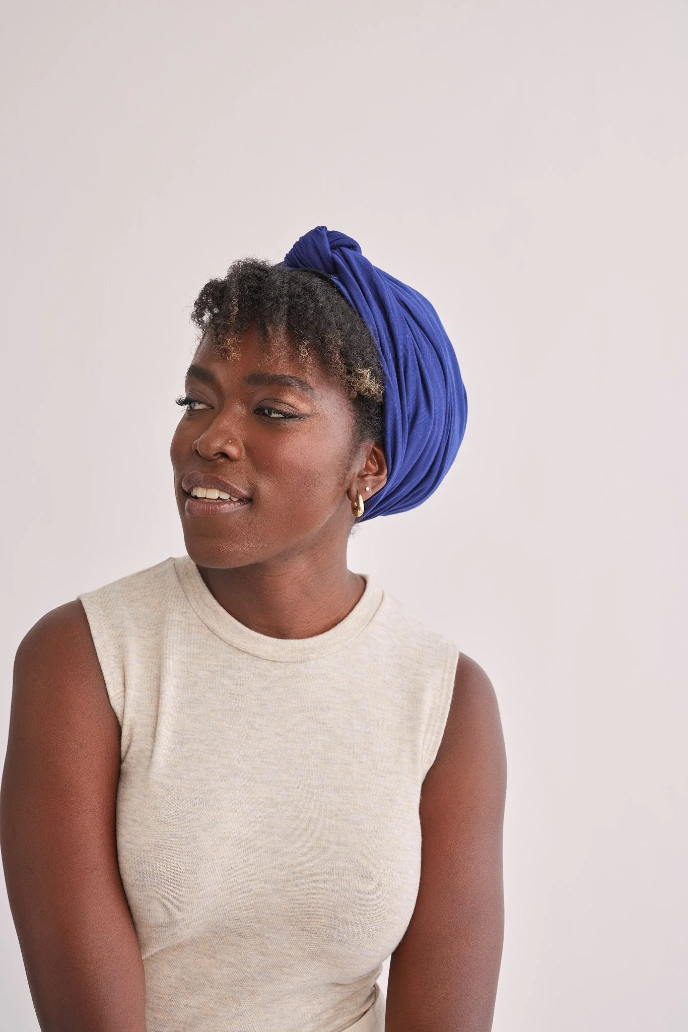 Navy Satin-Lined Knot Turban