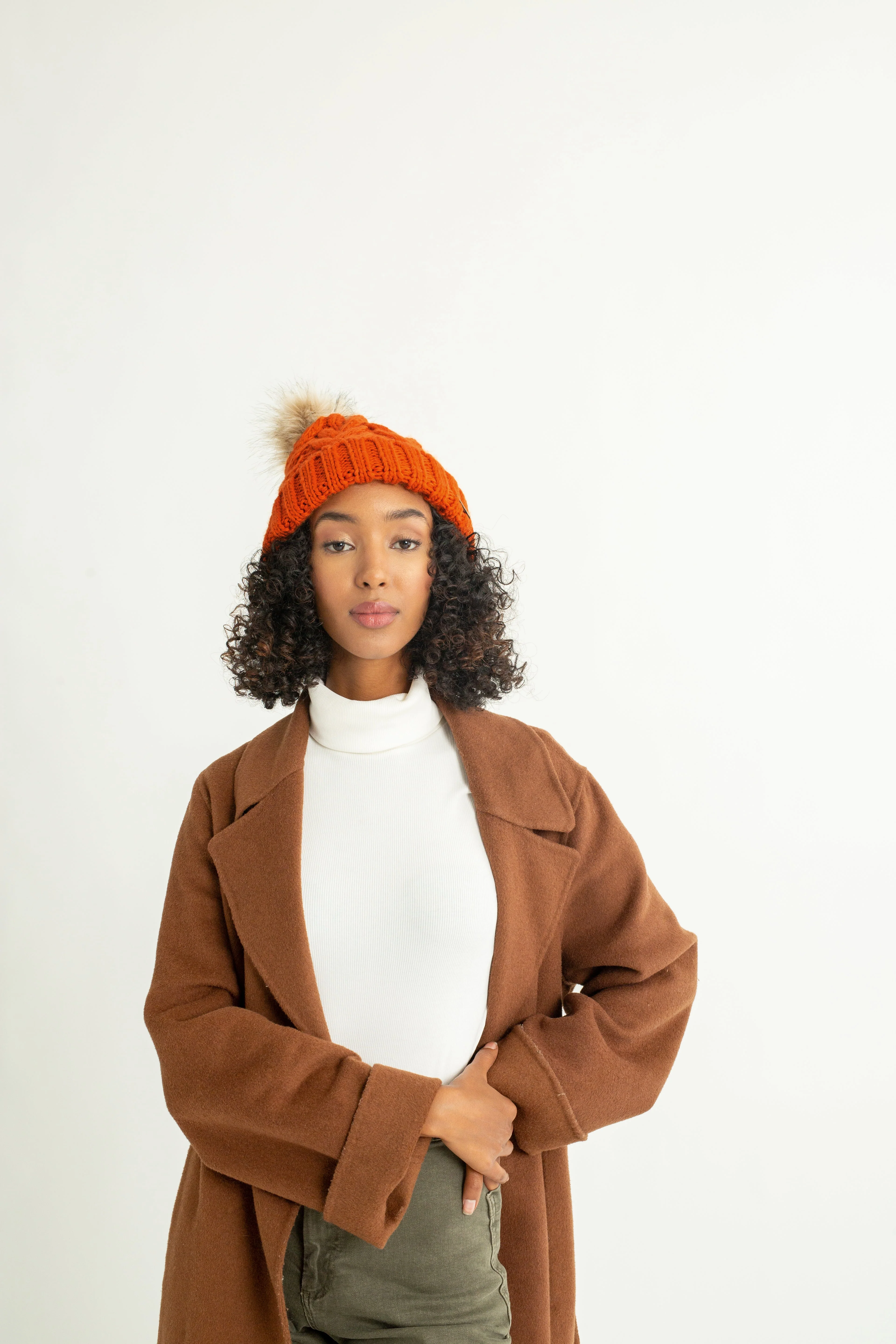 Orange Foldover Warm Slap w/ Pom
